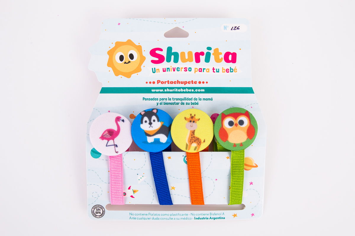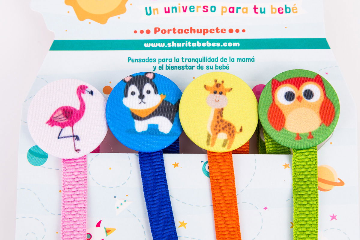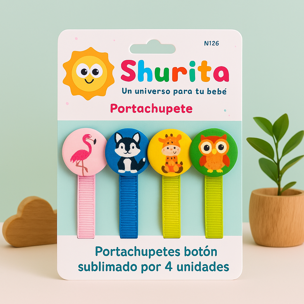 Portachupete con prendedor animalitos sublimado por 4 unidades.